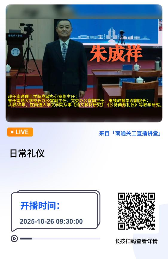 “南通关工直播讲堂”第二十讲即将开播,现将有关事项通知如下: